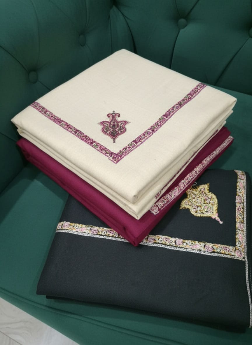 Discover the exquisite beauty of Kashmiri art. This gorgeous pashmina shawl offers exceptional warmth and compassion. It is the ideal focal point for any formal occasion due to its elaborate, colourful embroidery that creates a stunning contrast. A genuine investment in classic style.