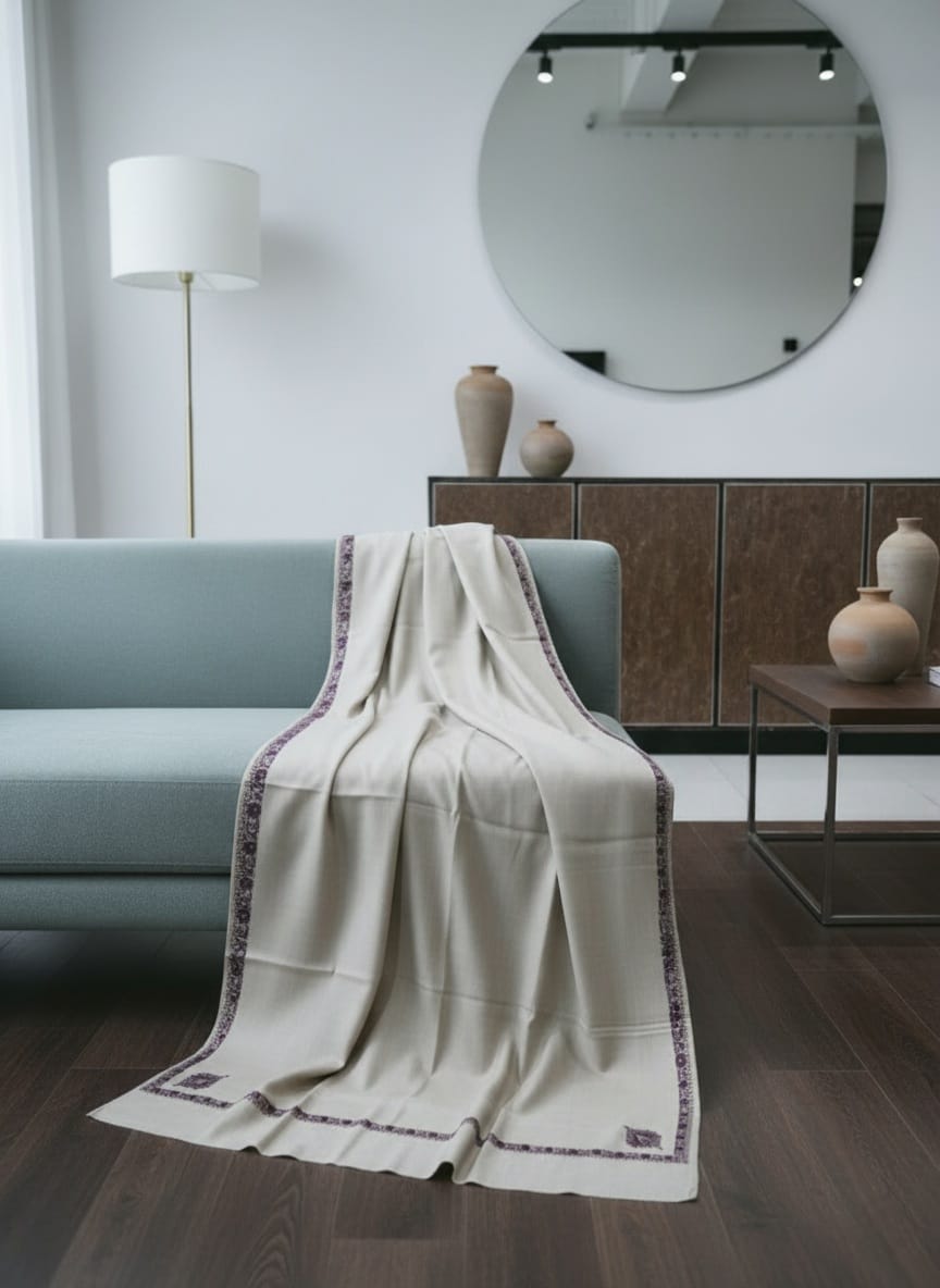 Discover the exquisite beauty of Kashmiri art. This gorgeous pashmina shawl offers exceptional warmth and compassion. It is the ideal focal point for any formal occasion due to its elaborate, colourful embroidery that creates a stunning contrast. A genuine investment in classic style.