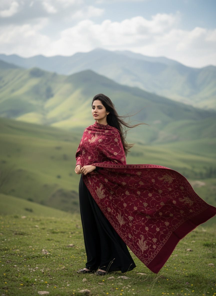 Experience the grandeur of Kashmiri artistry. This stunning, deep black shawl provides unmatched softness and exceptional warmth. Its intricate, multi-color embroidery offers a breathtaking contrast, making it the perfect statement piece for any formal occasion. A true investment in timeless elegance.