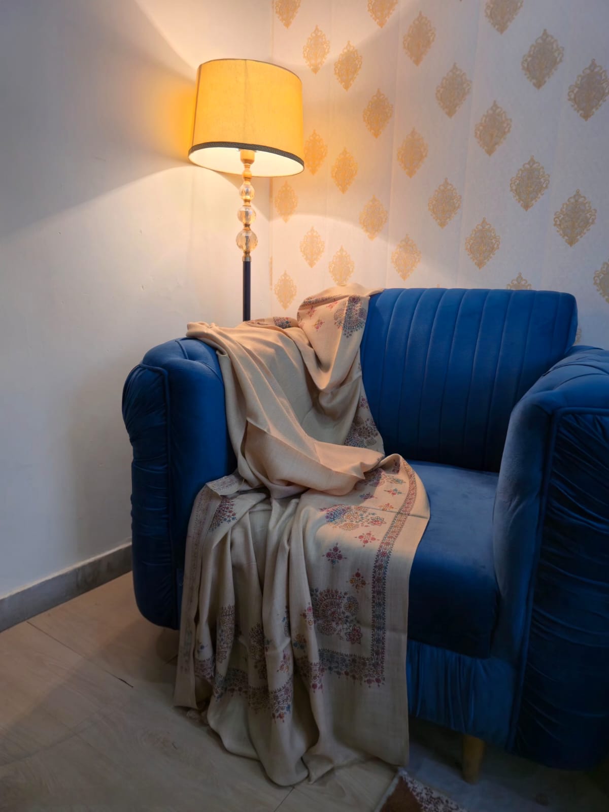 Experience the grandeur of Kashmiri artistry. This stunning, deep black shawl provides unmatched softness and exceptional warmth. Its intricate, multi-color embroidery offers a breathtaking contrast, making it the perfect statement piece for any formal occasion. A true investment in timeless elegance.